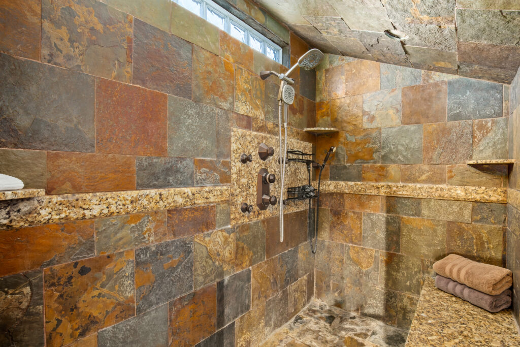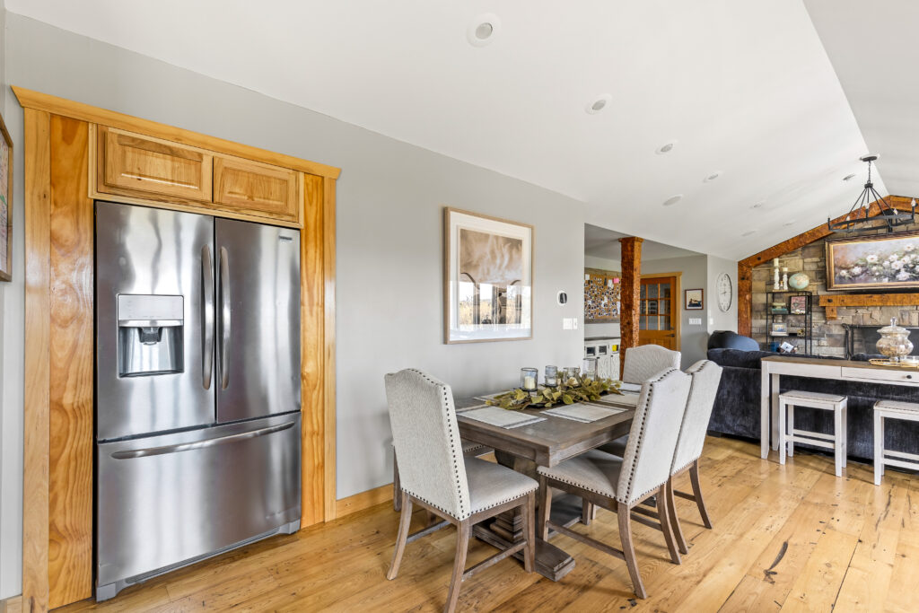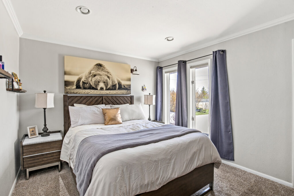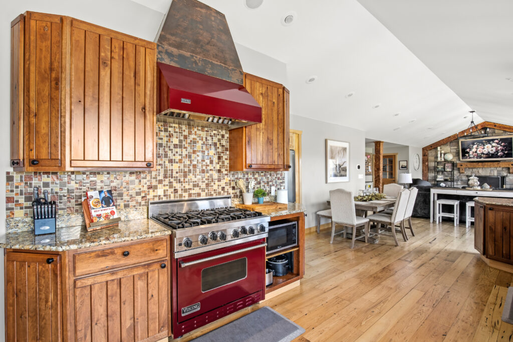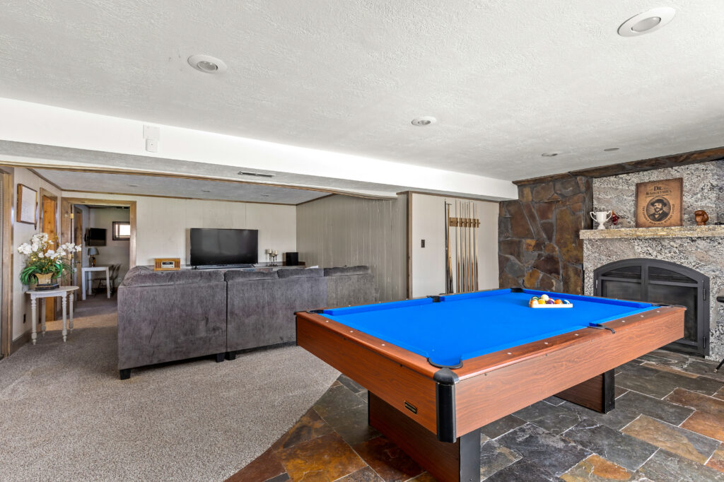 Out back, the home truly embraces its setting. A large deck stretches across the river-facing side, offering space to dine, relax, and take in the view. Just below, a private hot tub and pool invite summer fun, while the stone firepit at the river’s edge creates the perfect spot to gather as the sun sets. Towering trees and open lawn space provide shade, privacy, and a front-row seat to Montana’s changing seasons and visiting wildlife.