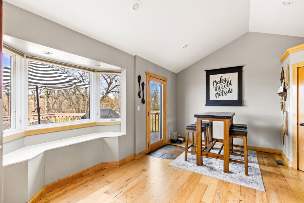 Tucked along the banks of the Missouri River, this month’s cover home is a riverfront retreat that offers a rare blend of comfort, character, and connection to nature. Situated on nearly two acres, the property welcomes you with sweeping views, mature trees, and the tranquility of waterfront living. A three-car garage and wide front drive lead into the six-bedroom, four-bath home where architectural charm, a stunning stone fireplace, and thoughtful updates shine throughout.